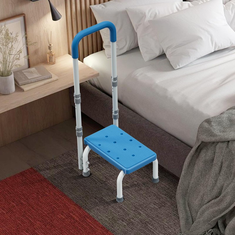 WHOMEC Step Stool with Handles for Elderly-Bed Stools with Adjustable Handrails and Non-Skid Platform,Foot Stool for Bedside,Kitchen,Car,Bathtub,Holds up to 350 lbs