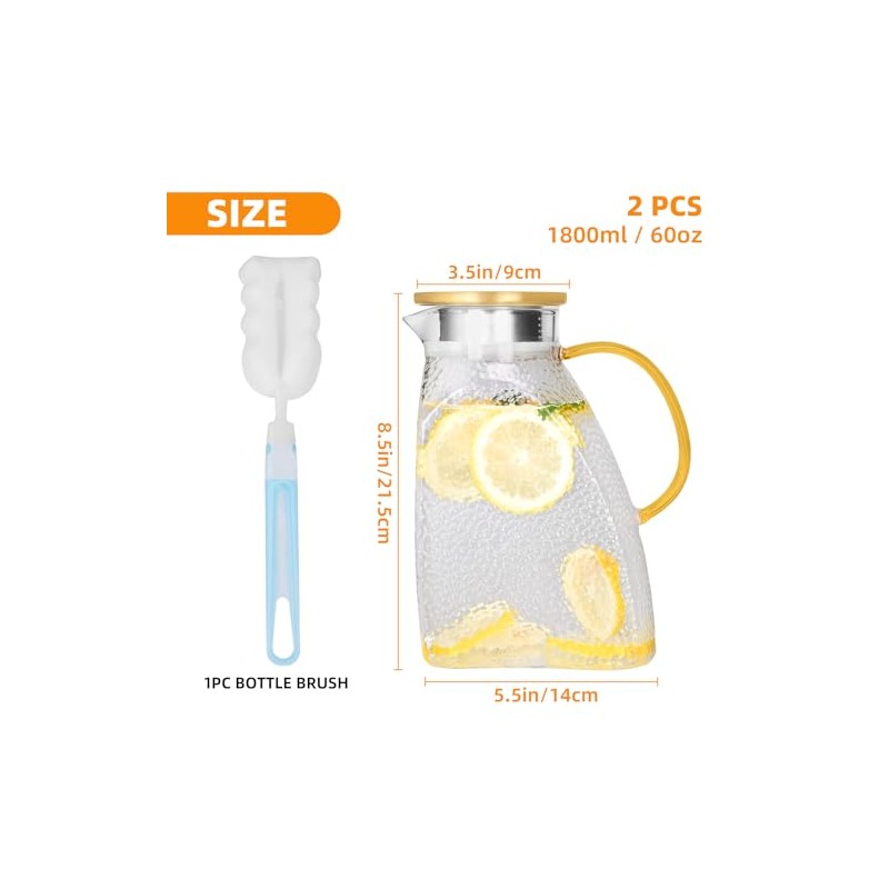 - With a generous 1.8 Liter or 60 oz capacity glass pitchers with handle and lid , It is ideal for serving homemade iced tea, juice, sangria, cocktails, coffee, or milk