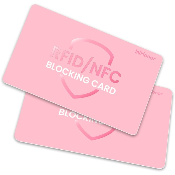 WHonor RFID Blocking Card 2 Pack, One Card Protects Entire Wallet/Purse, Debit Credit Card Protector, Anti-Theft Contactless NFC Blocker (Pink, 2 Pack)