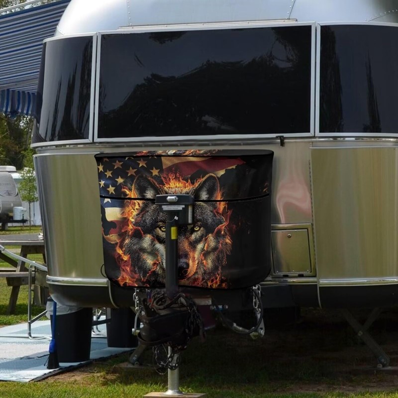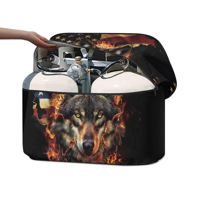 Whosucclay American Flag Wolf RV Propane Tank Cover Anti Dust Heavy Duty Cover for RV, Travel Trailer Sun Protection Propane Tank Covers for Double 20LB 30LB 40LB