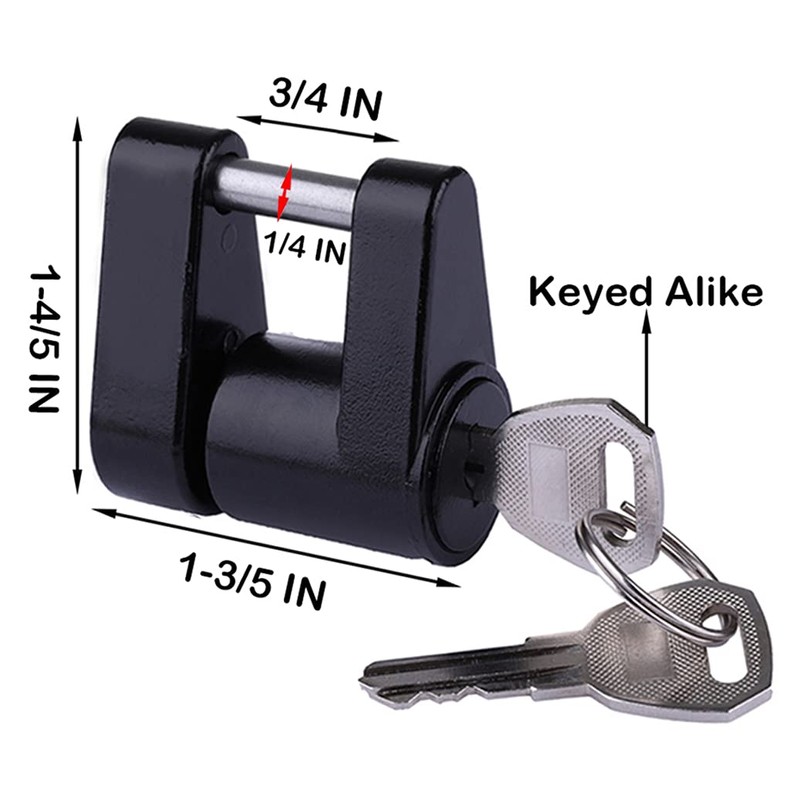 - 【Trailer Coupler Tongue Lock】 - Padlock style with a 1/4-inch diameter pin, this trailer coupler lock fits latch-type couplers with a maximum span of up to 3/4 inches