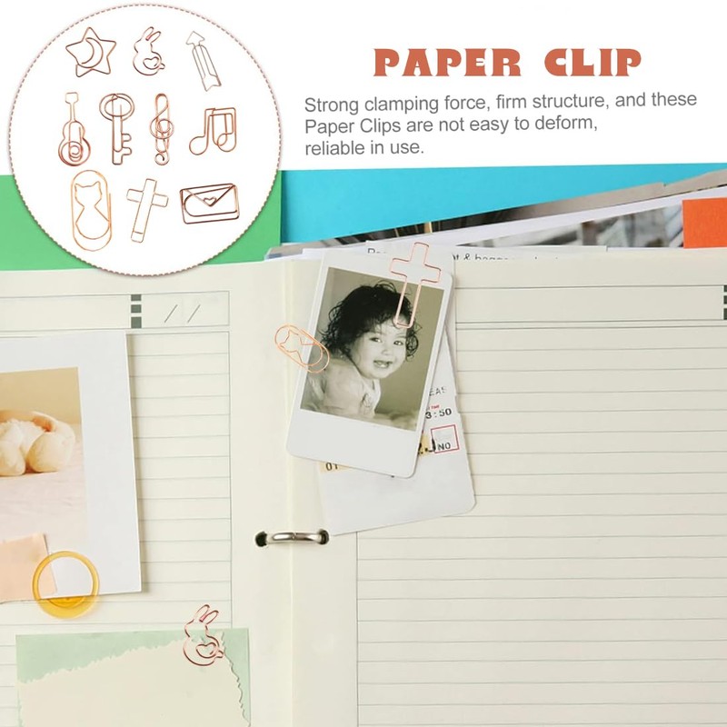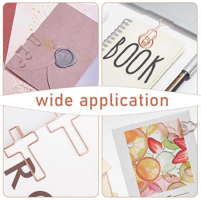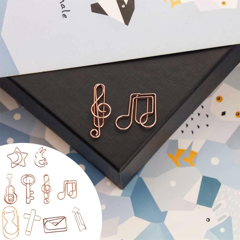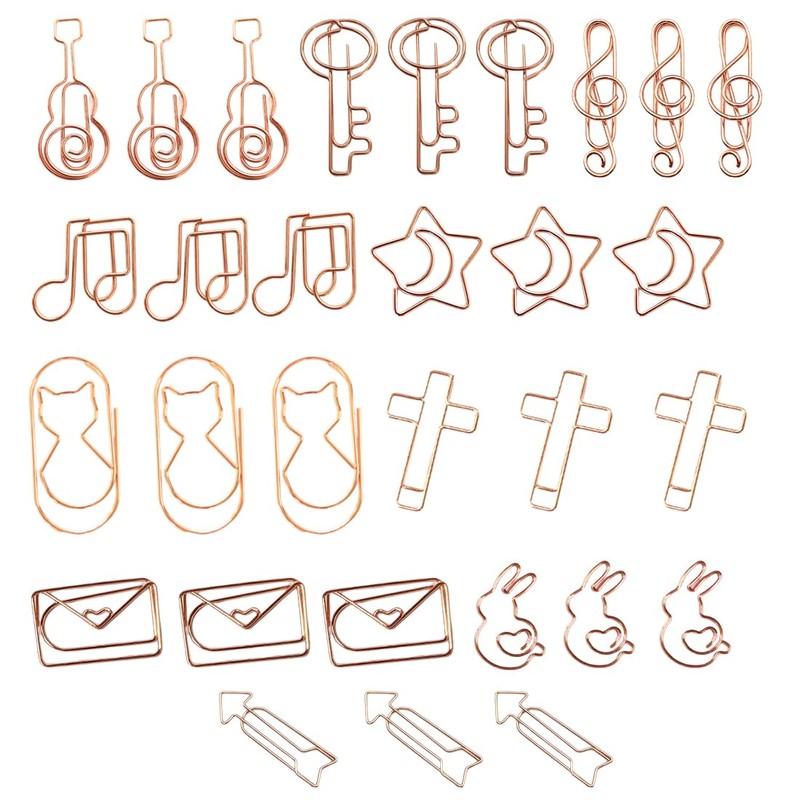 WHYCNJL Pack of 30 Paper Clips Paper Clips with Crosses, Envelopes, Music Notes etc., Paper Clips Set for File Clip, Office, Classroom (Rose Gold)