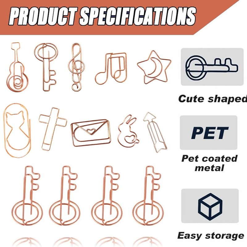 - Versatile and adorable designs: Our WHYCNJL paper clips are available in different shapes such as cats, rabbits, arrows, notes, guitars, envelopes and keys. These cute motif paper clips provide a creative and charming way to organize and accentuate documents.