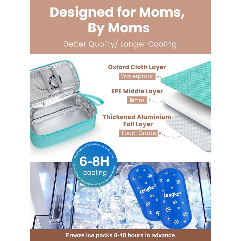 ✅ All-Day Cooling Power: The triple-layer insulation (PE foam + aluminum foil + waterproof Oxford cloth) paired with ice packs for breastmilk storage keeps milk frozen for up to 8 hours. Ideal for short outings, workdays, or weekend getaways.
