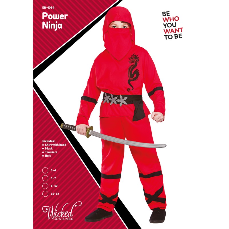 Wicked Costumes Boys Red Power Ninja Fancy Dress Costume - Small (3-4 Years)