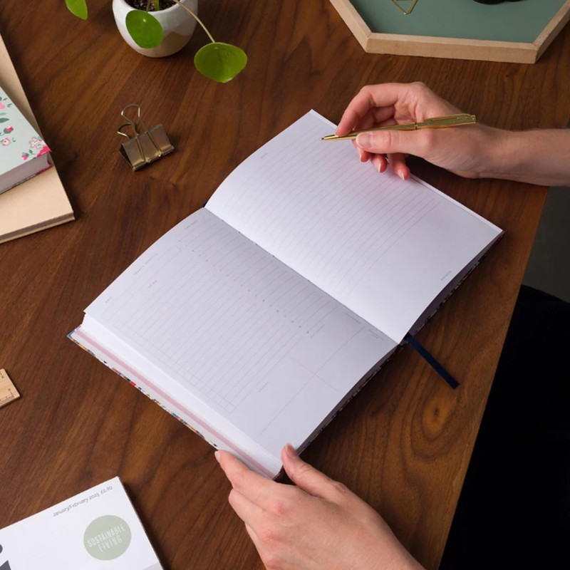 • Measuring 21cm x 15cm, this diary is compact enough to fit in your bag while still offering ample writing space.