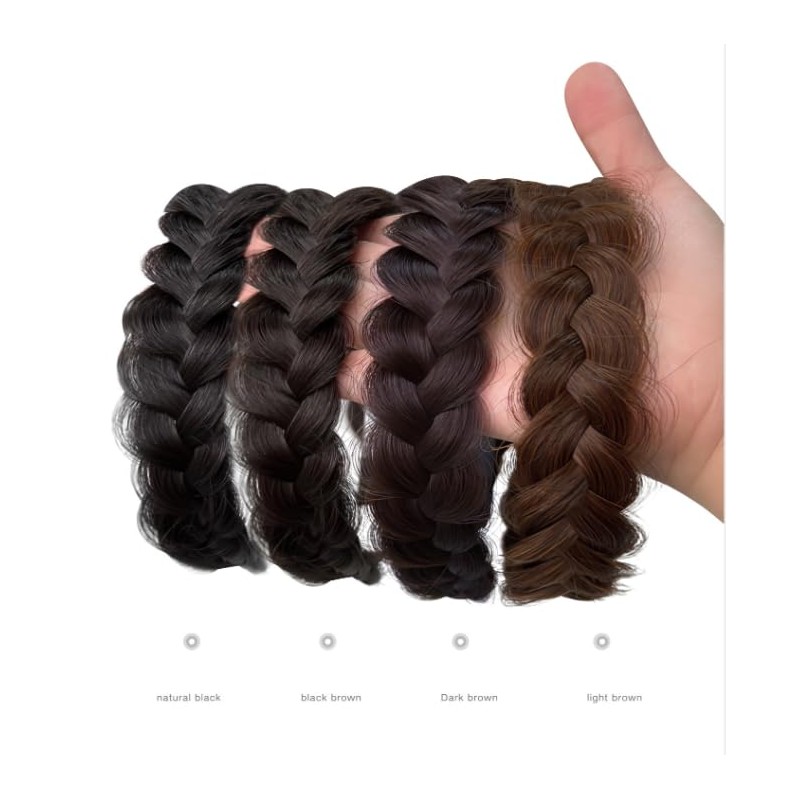 Wide Braided Headband with Teeth Synthetic Hair Headband High Elasticity Braids Fishtail Braided Hair Band Hairpiece for Women (Black brown, One size)