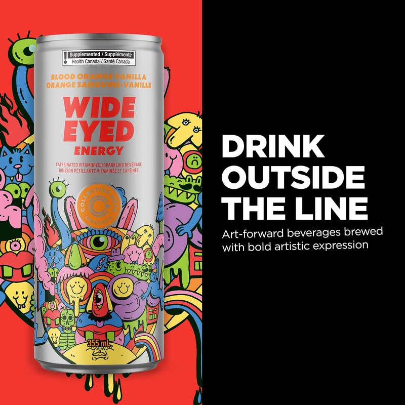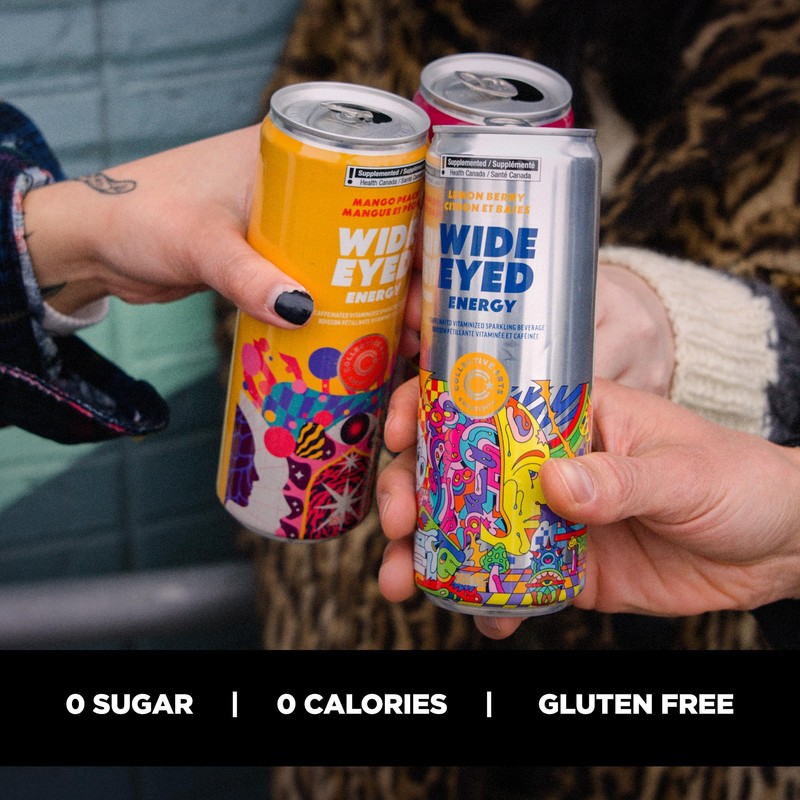 - Energizing Beverage: Wide Eyed Energy is a caffeinated, vitaminized sparkling beverage infused with mango peach flavors for a refreshing and invigorating boost.