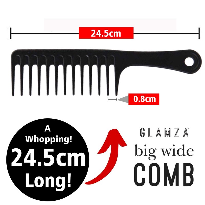 • ✅ VERSATILE - The Glamza Wide Comb is Suitable for all Hair Types. Need a Comb for Curly Hair? With our Wide Tooth Comb Curly Hair is no Problem Thanks to the Huge Detangler Teeth! Used as a Shower Comb, It will also Glide through Wet Hair Effortlessly.