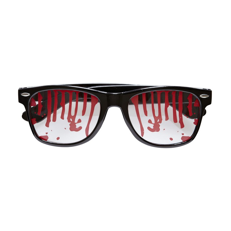 - The glasses with black frame have clear lenses which are decorated with blood drops