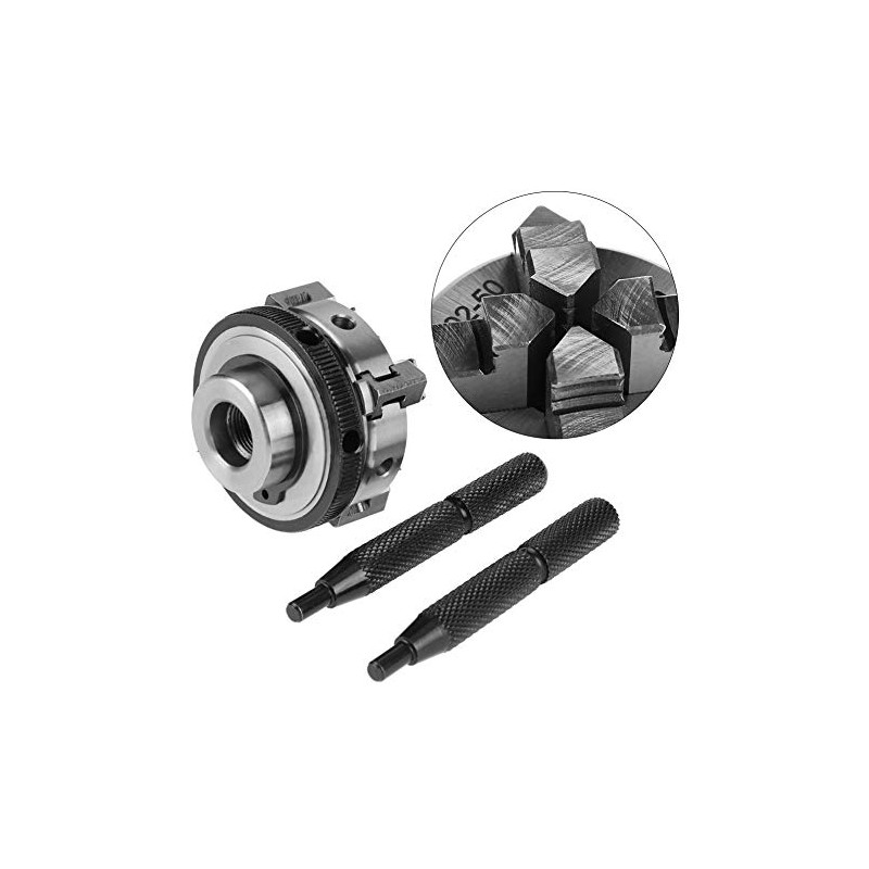 Wifehelper 50mm Mini 4 Jaw Reversible Self-Centering M14 Thread Mount Lathe Manual Chuck K02-50 with 2pcs Lock Rod