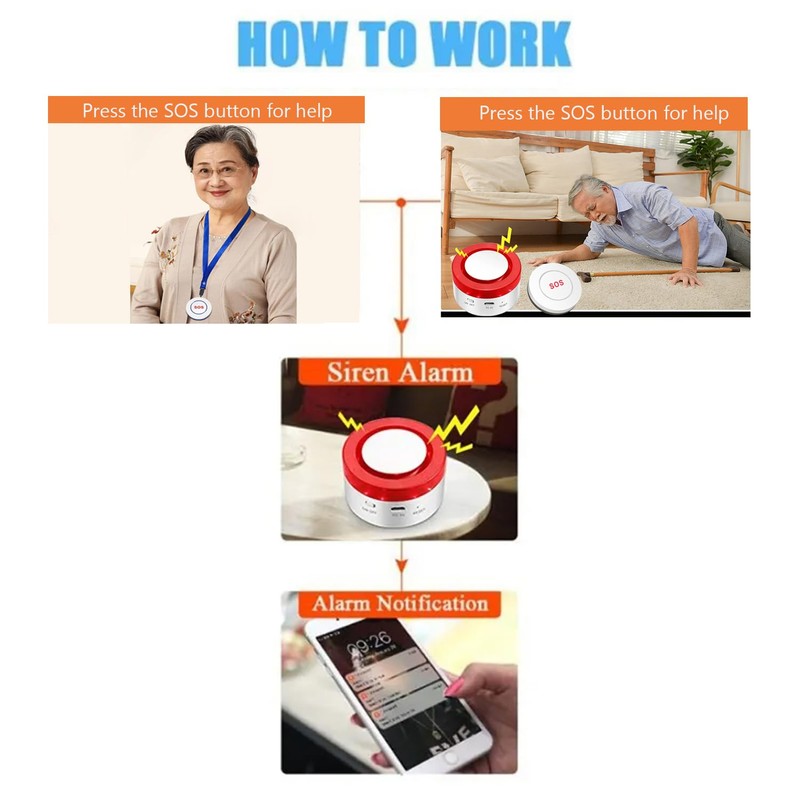 - KEEP YOU PEACE OF MIND: This is a call and help system designed for the elderly, patients, and those with limited mobility. The SOS Panic Button Alarm is a good present for anyone who has elderly or someone needs help, so they have a piece of mind knowing that when their parents are home alone they can still be safe, or easily notify you if they need help like if they fall or get hurt.