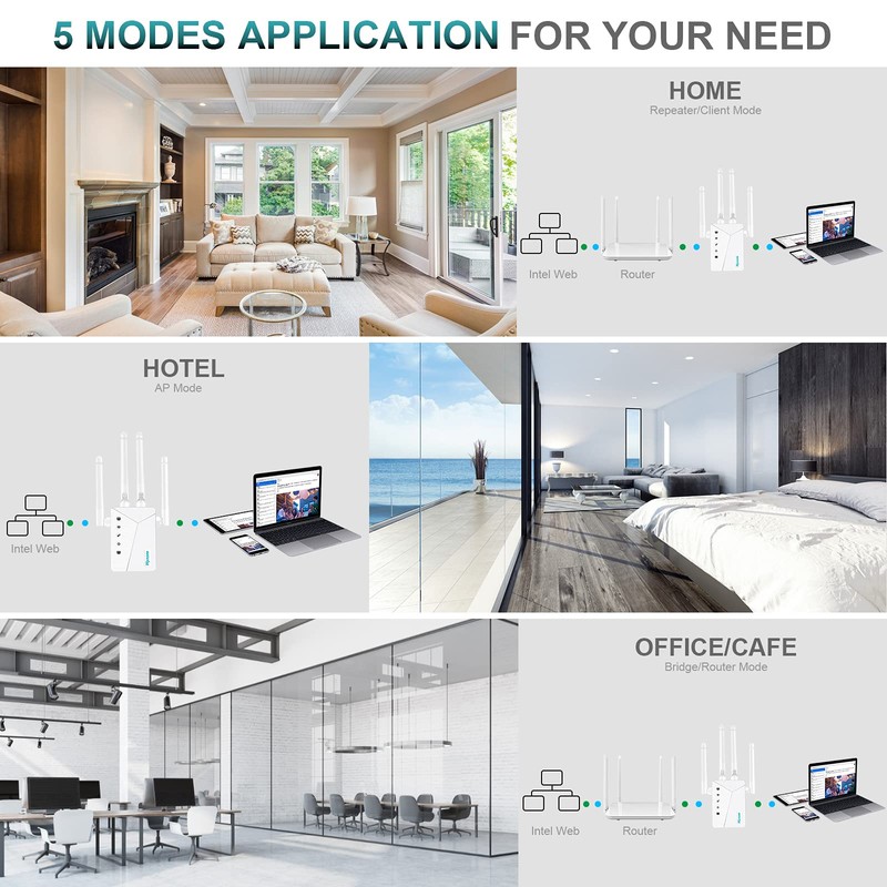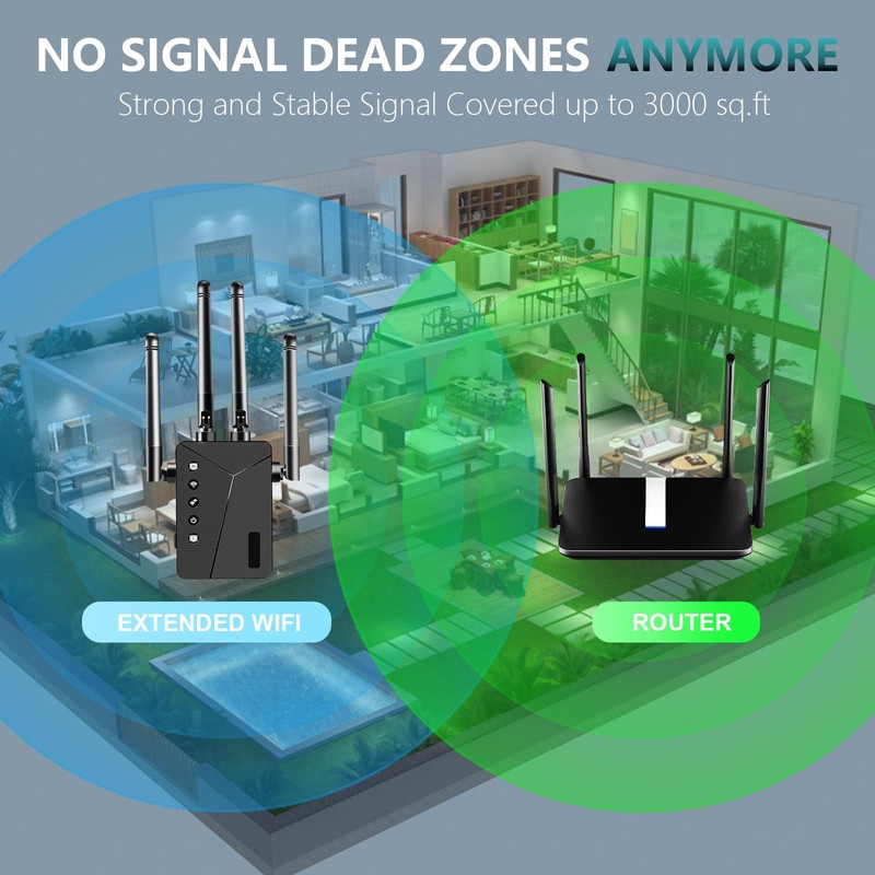 - Whole-home 360° coverage wifi extender: the upgraded wifi extenders signal booster expands your signal to cover up to 11,800 sq. ft., eliminating dead zones