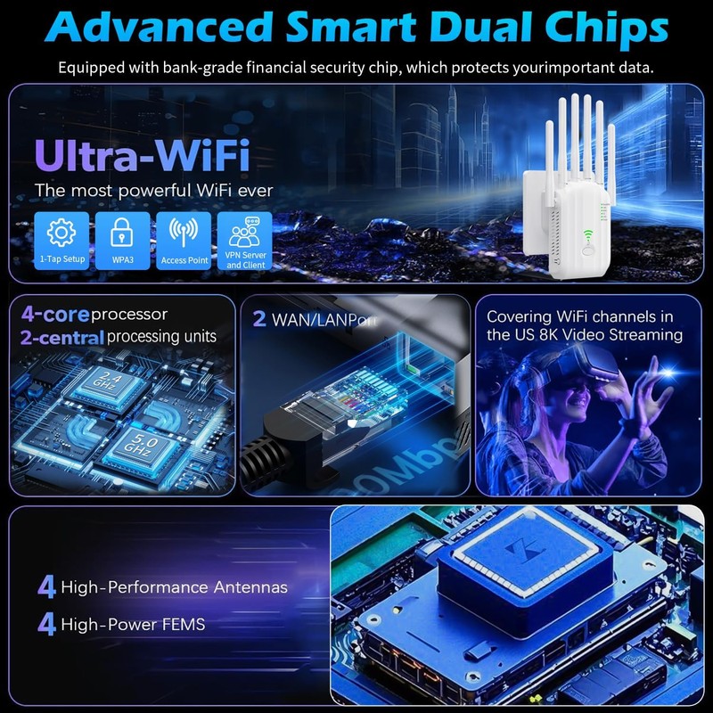High-Speed Processing: Enjoy seamless online experiences even when the entire family is online with the newest powerful CPU of our internet extender wifi booster. You can easily handle the demands of every device in your home to avoid delays and buffering.