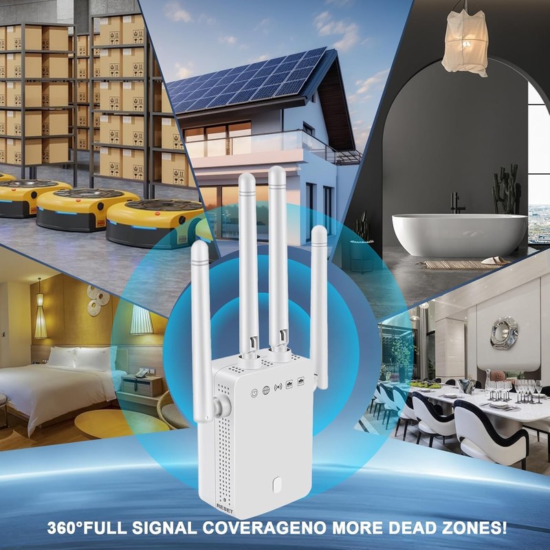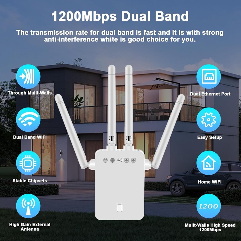 WiFi Extender Signal Booster,WiFi Extender, 5G WiFi Booster with 1200Mbps Dual Band(Up to 10000sq. ft for 55+ Devices), WiFi Repeater with 4 Antennas 360° Coverage, WPS 1-Tap Setup & Ethernet Port