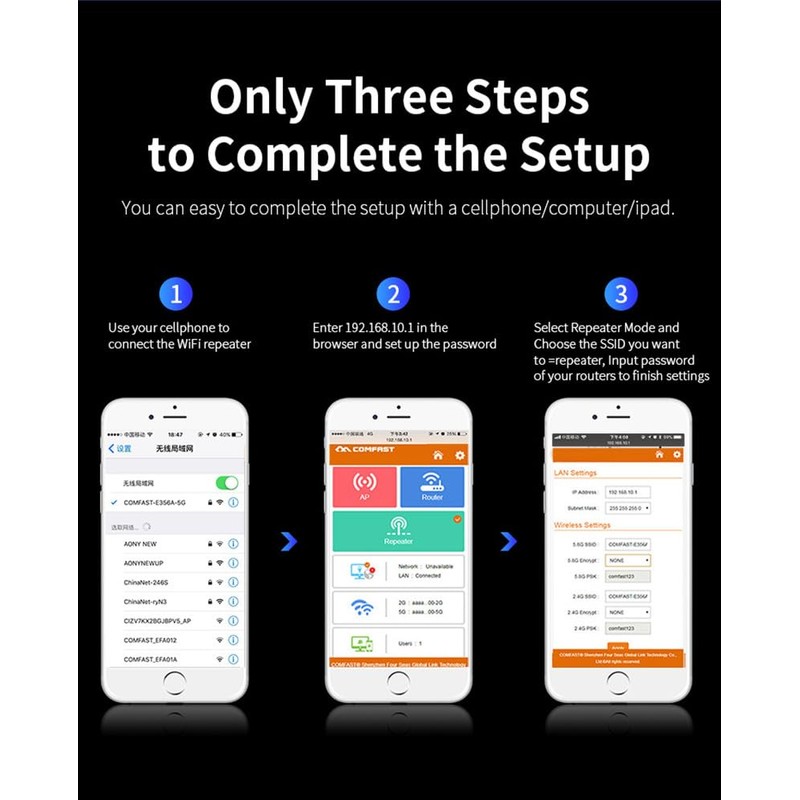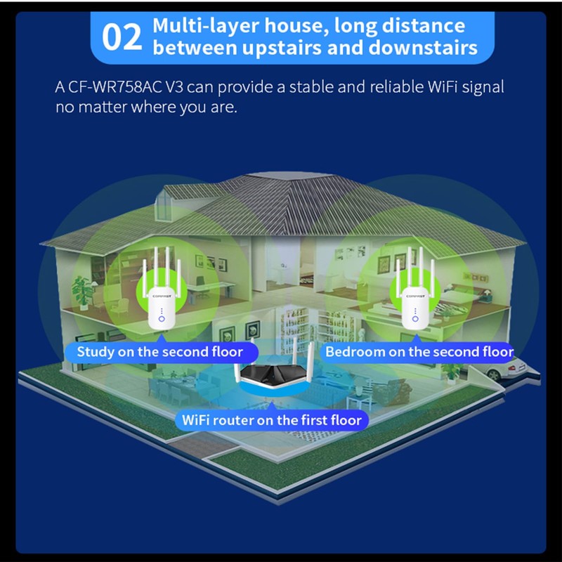 • Intelligent signal light, one click optimization: real-time signal strength indicator light, automatic recommendation of the best installation location, one click WPS pairing, quick connection to the main router in 3 seconds, eliminating complex settings.