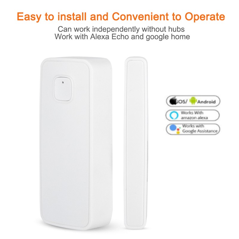 1、Free APP mode, for Tuyasmart, one-click WiFi or AP mode to connect wifi. 2、Long transmission distance, up to 45 meters, and strong network signal. 3、Can work independently without hubs and is compatible with for Alexa and for Google home. 4、Ultra-long standby time. 2 AAA batteries for power supply (not included), of which standby time last for 5 years. 5、By connecting WIFI (2.4G only) and mobile phone connection, alert will be pushed to mobile phone via APP when the abnormal status detected.