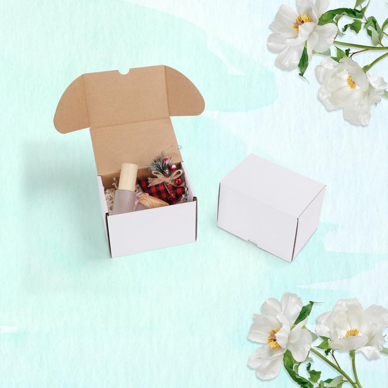- Pure white boxes: Prepare your items for shipping with a clean, white appearance. Display your products in our small cardboard shipping box white by adding your logo or creative design to the surface of these boxes.