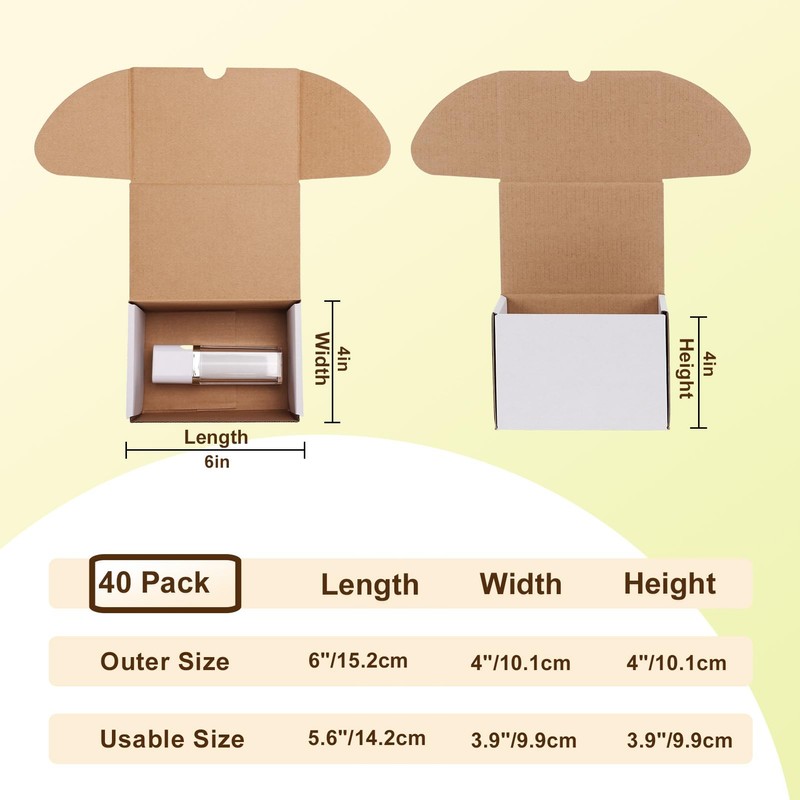 - Dimension: The white shipping boxes with an outer size of 6'’x4''x4'', and a usable size of 5.6"x 3.9"x 3.9". With 40 packs of our affordable shipping boxes, it is suitable for packaging small business.