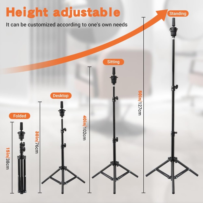 - 【Adjustable Height for Custom Comfort】Tailor the height of the wig stand to your needs! Easily adjust the tripod to achieve the perfect working position, whether seated or standing, enhancing ergonomics and precision during practice.