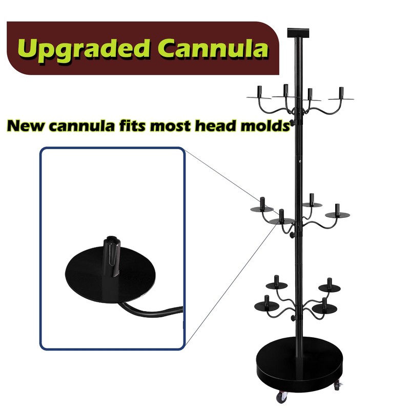Lhysn Wig holder for 12-Mannequin Head Multiple Wigs, Wig Styling Stand Display Holder Organizer Metal Wig Rack On Wheels Tree Shelf Tripod -Patent Protected