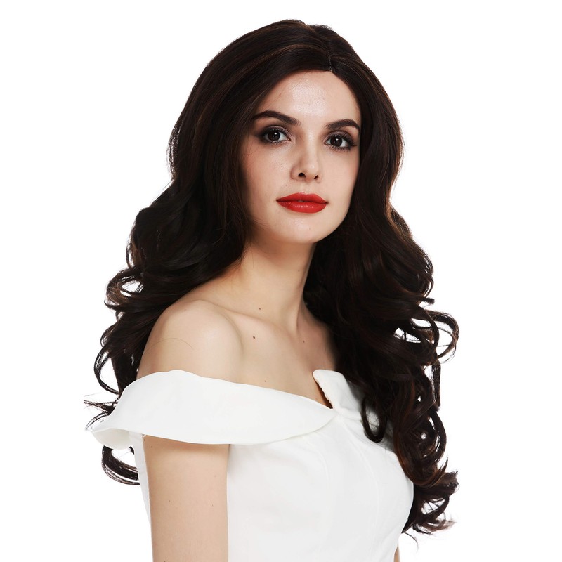 - Opulent curly, magnificently voluminous women's wig - a real diven look in dark brown highlighted with copper-brown lowlights. This wig not only enchants with its glamorous style, but also impresses with its hand-knotted lace front and small monofilament under the parting with great comfort and very natural roots.