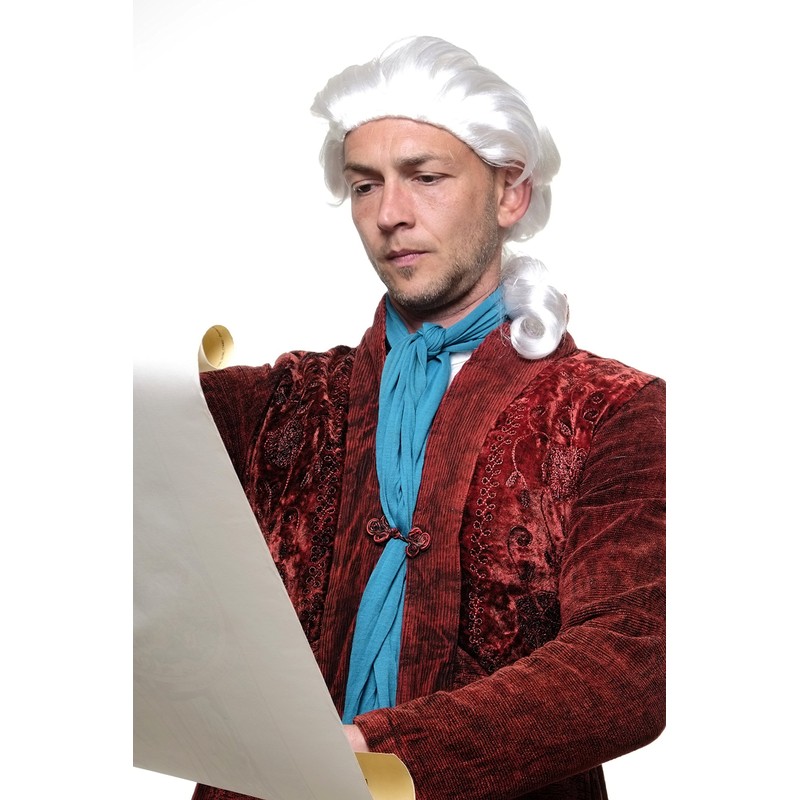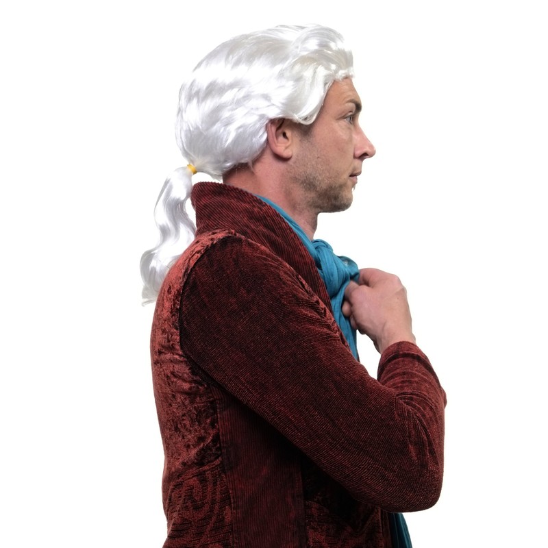- White wig in baroque style with braid - ideal for fancy dress as a nobleman, colonial plantation owner or even as Count Dracula.