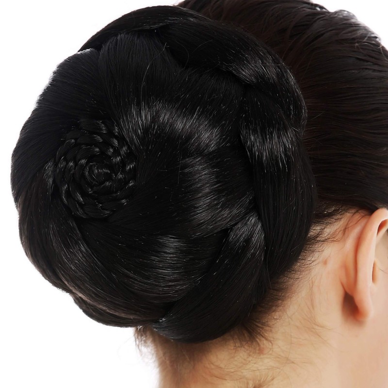 - The bun is placed in the tied hair with the small combs behind the hair band that holds your own hair together. Your braid base disappears under this hair bun. For extra grip and sophisticatedly beautiful addition, you can also put hairpins through the loops inside the hair bun