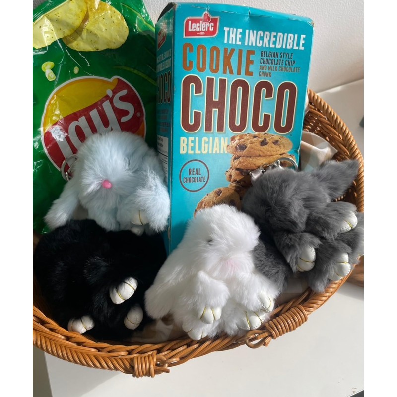 Wigo Mofumofu Rabbit Plush Keychain, gray