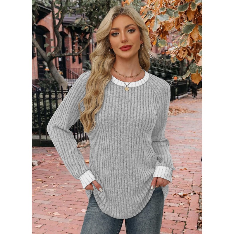WIHOLL Sweaters for Women Lightweight Teacher Shirts for Women Fall Clothes Casual Boat Neck Long Sleeve Tunic Tops for Women Loose Fit Dressy Maternity Comfy Basic Grey L