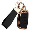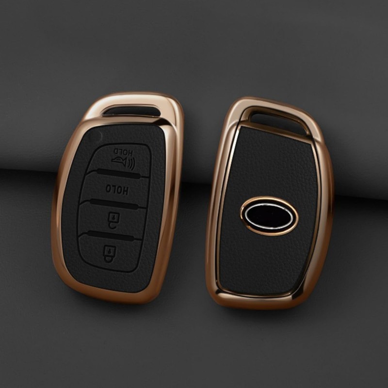WiiLemz Key Fob Cover for Hyundai with Key Chain, Upper Leather + Soft TPU Key Cover Case Shell for Hyundai Elantra GT Ioniq Sonata Tucson 4 Buttons (Black)