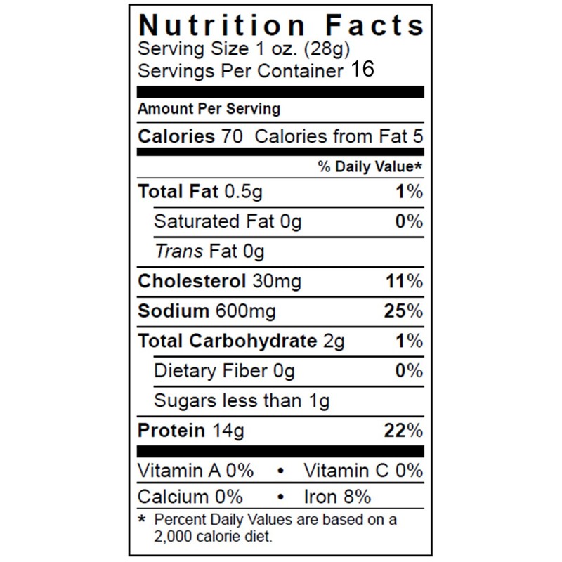 - Premium hickory smoked top round marinated in soy sauce, garlic, and black pepper