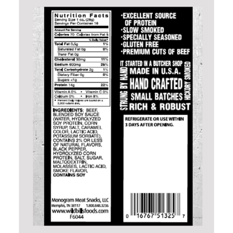 - 16oz of Wild Bill's Hickory Smoked Beef Jerky Pieces