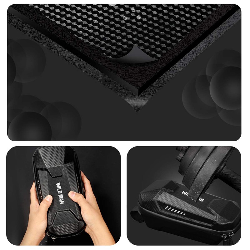 2. Material: Scooter bag is made of cold press hard housing process, EVA material, very lightweight, drop resistant and not easy deformation, surface carbon pattern PU fabric, moisture resistant and durable, reflective logo design to improve the safety of night travel.