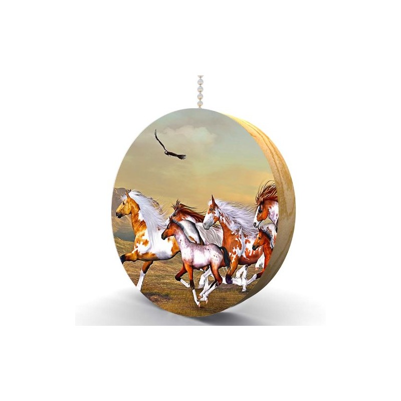 Wild Running Horses Hardwood Oak Fan/Light Pull