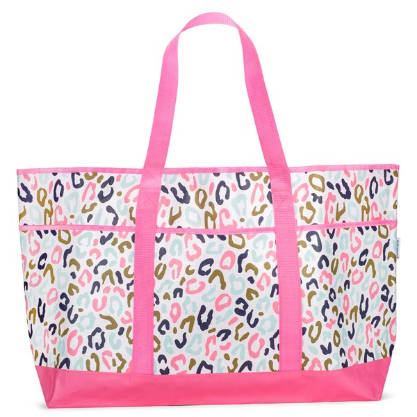 Wild Side Pink Leopard 22 x 15 Polyester Open Tote Bag with Shoulder Straps