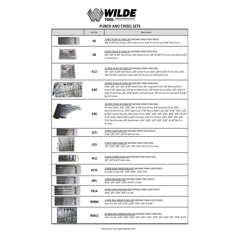 Wilde Tool CC5.NP/VP 5-Piece Cold Chisel Set-Vinyl Pouch , Silver