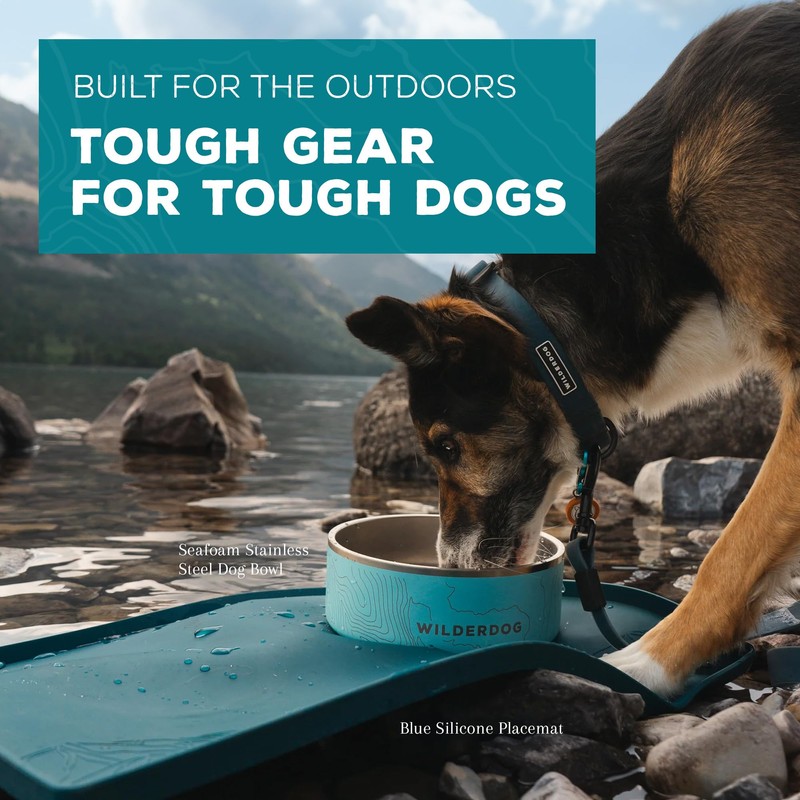 Wilderdog Silicone Pet Placemat Made with 100% Food-Grade Silicone Cone, BPA, PVC, and Phthalate-Free. Non-Toxic, Dishwasher Safe Feeding mat for Bowls with Spill Catcher and Raised Mountain Logo