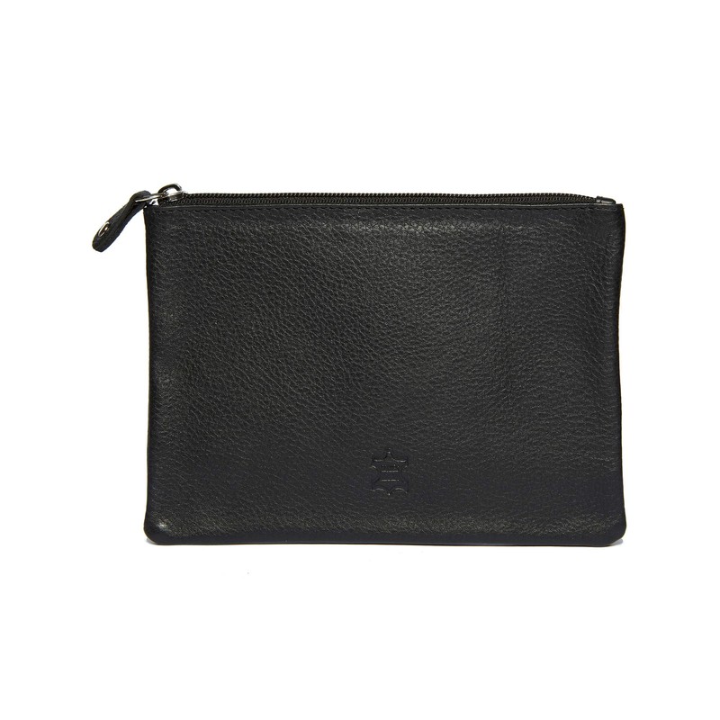 Wildery Small bank bag made of genuine leather bank folder with zip, money folder in black, brown, crunch (black)