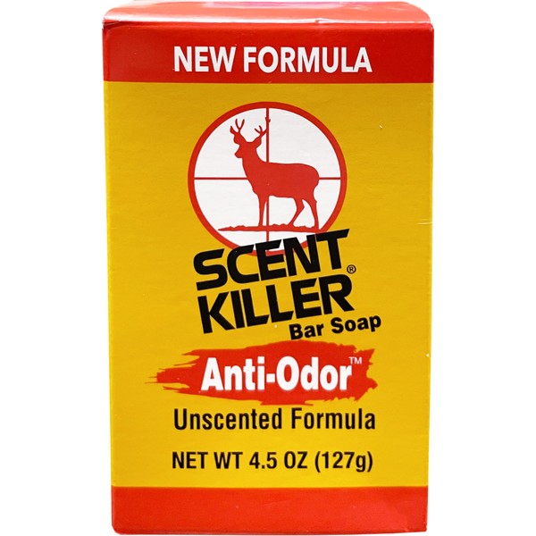 Scent killer bar soap has a special anti-odor formula that fights odor. It has a new improved formula in an unscented bar.