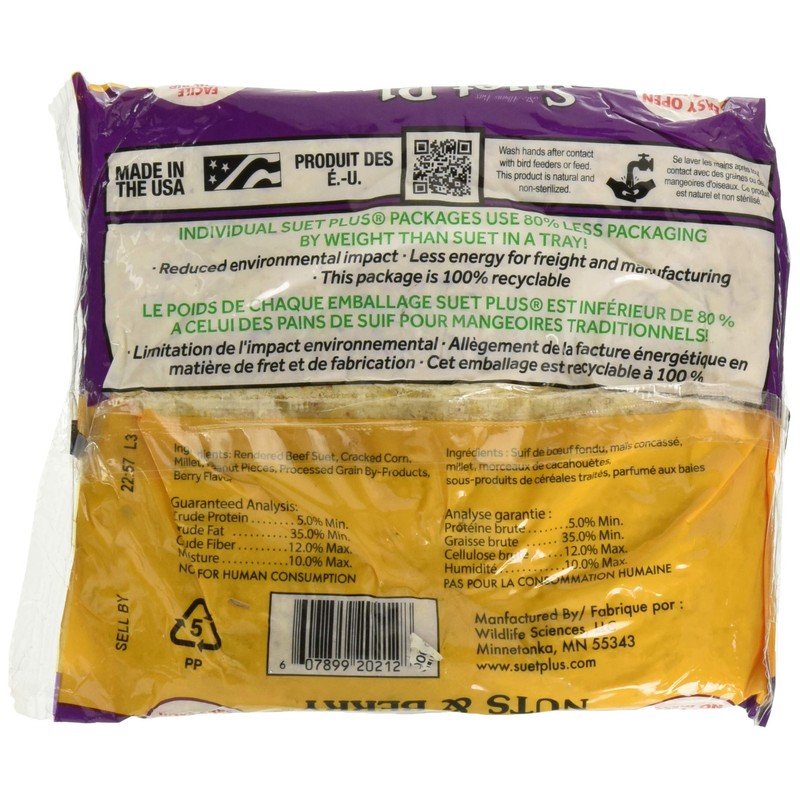 - Wildlife Sciences uses only the finest and freshest ingredients in the Nuts and Berry Blend Suet Cake