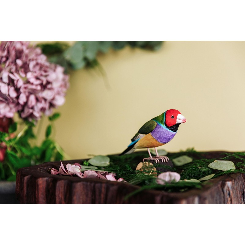 WILDLIFEGARDEN Wildlife Garden WG4814 DecoBird Gouldamadine - Hand Carved Decorative Wooden Bird - Australian Birds