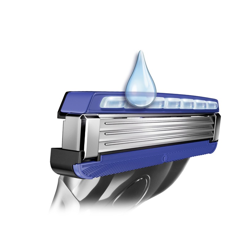 - The water-activated gel reservoir helps protect the skin and maintains the moisture content of the skin during shaving.