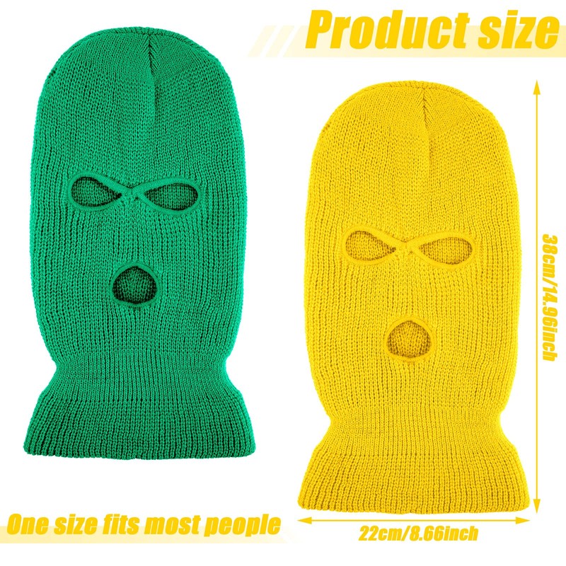 WILLBOND 2 Pieces Knitted Full Face Cover 3 Hole Mask Winter Balaclava Face Cover, One Size(Green, Luminous Yellow, Medium)