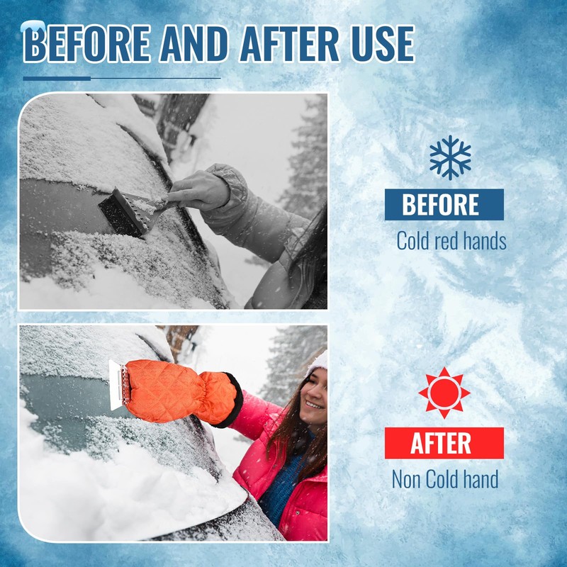 - Versatile Use: the car scraper with glove is not only efficient in removing ice but also snow, making it a practical tool for winter weather conditions; Its suitability across different vehicles and surfaces enhances its flexibility and usability