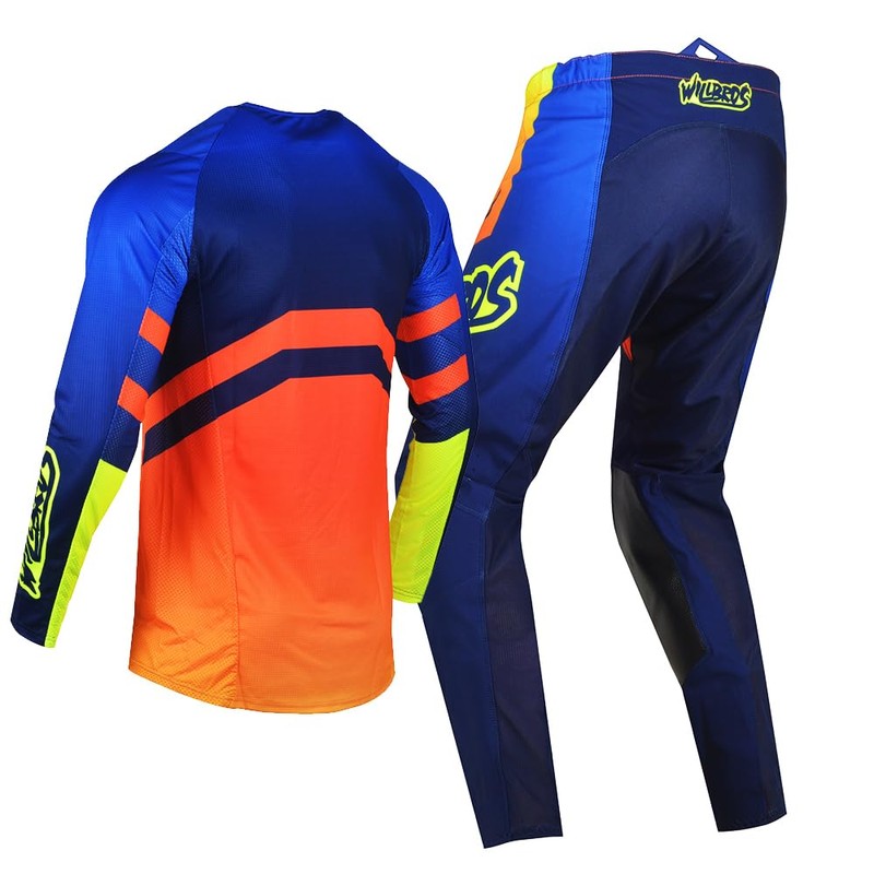 Willbros Men's Dirt Bike Gear Set Motocross Jersey Pants Combo MX Suit Enduro Riding Off-road Adult Blue Orange (Jersey L Pants 34)