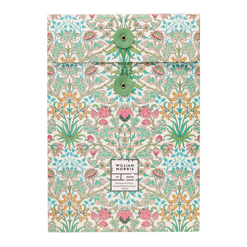 William Morris At Home Bergamot & Vetiver Scented Drawer Liners | Suitable For Kitchens & Bedrooms | Cruelty Free & Vegan Friendly | 5 Sheets, Spring Green, Red, Blue