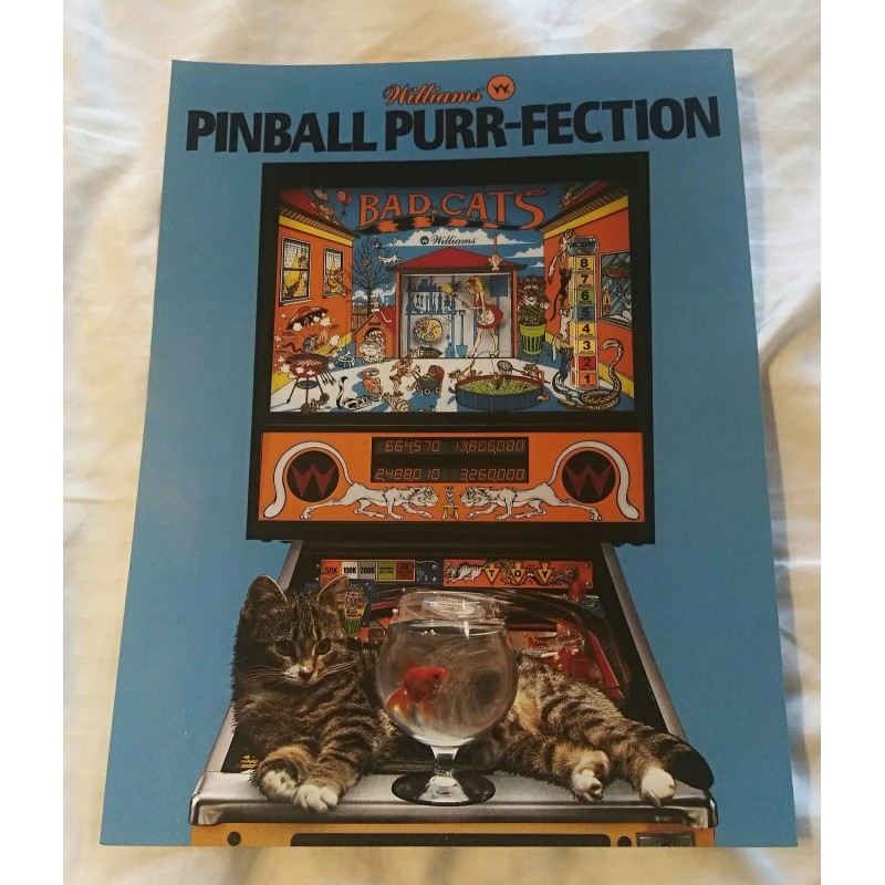 Bad Cats Pinball FLYER 1989 Williams Original NOS Kitten Calico Cat Art Print. Original, good flyer in excellent condition (limited to no wear and tear, let me know if you have any questions), new old stock, vintage pinball Machine Advertising Flyer. Perfect for any pinball collector. Perfect for framing inside your game room. Shipped secure with USPS First Class mail. Sold as is-NO RETURNS. Thank you!