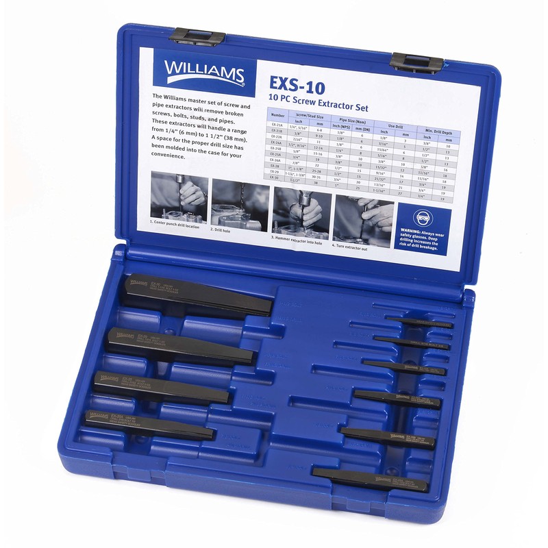 Williams EXS-10 Screw Extractor Set, 10-Piece, Black