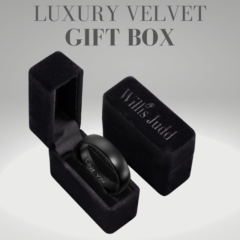 Willis Judd I Love You Mens Tungsten Ring Black 6mm In Wooden Gift Box 6mm Wedding Band Ring Mens Engagement Ring Groove Promise Ring Comfort Fit (Z+1)